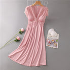 Nightdress Female Ice Silk Sexy Dress Mid-length Lace