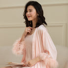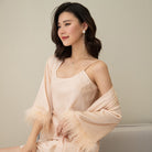 Women's Ice Silk Feather Pajamas Two Piece Set